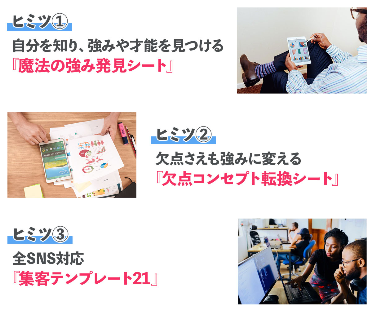 今、あなたが強みや才能などを持ち合わせていなくても、3つの秘密で未経験者でも、在宅セミナー講師を実践することが可能です。